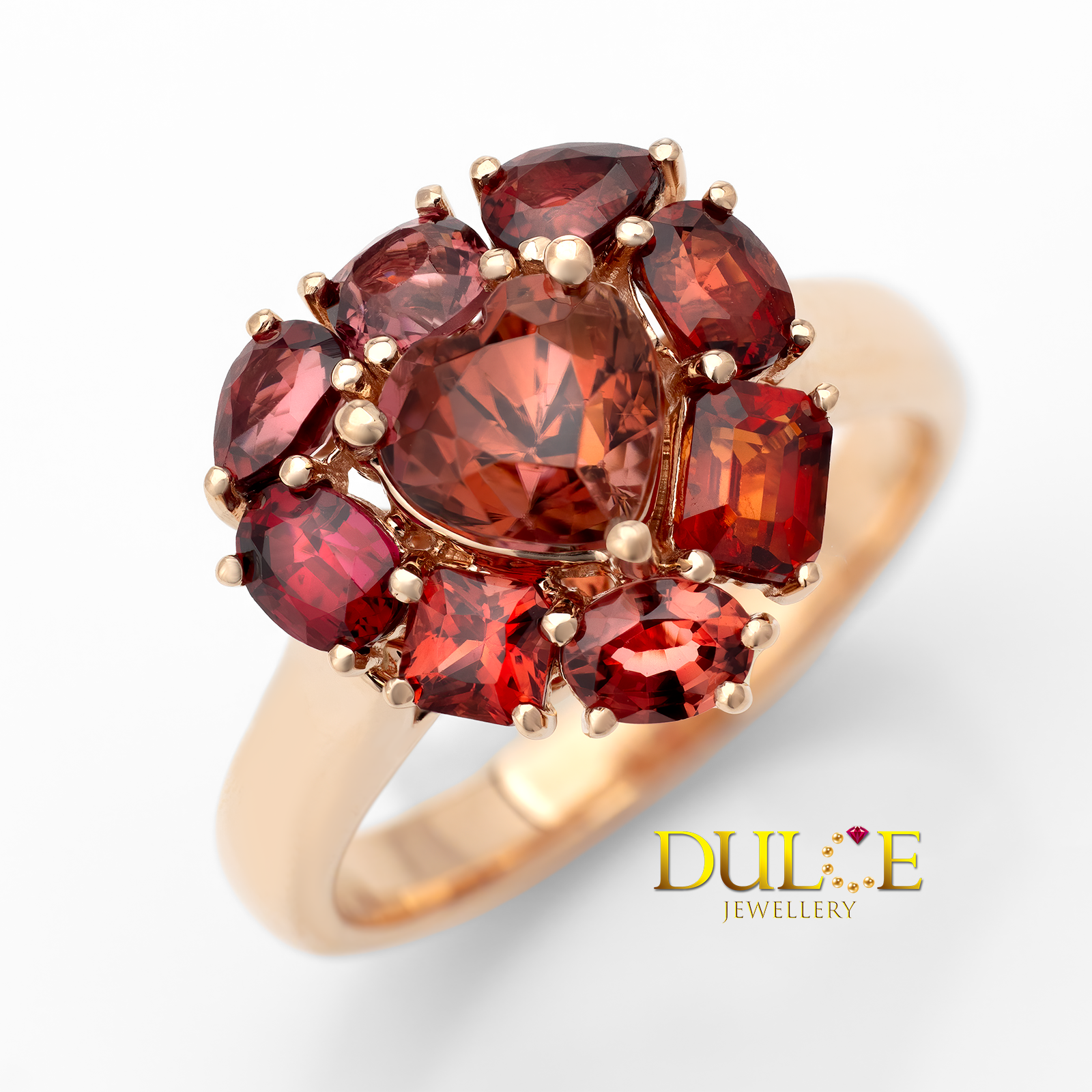 14K Gold Orangey Tourmaline & Red Spinel Ring