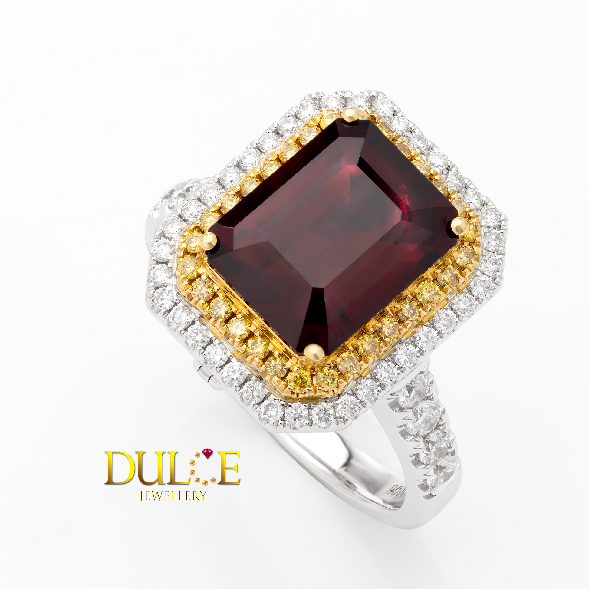 18K Gold: 7.39g Red Spinel: 4.04ct Yellow Diamond and Diamond(E/F VS): 0.709ct |