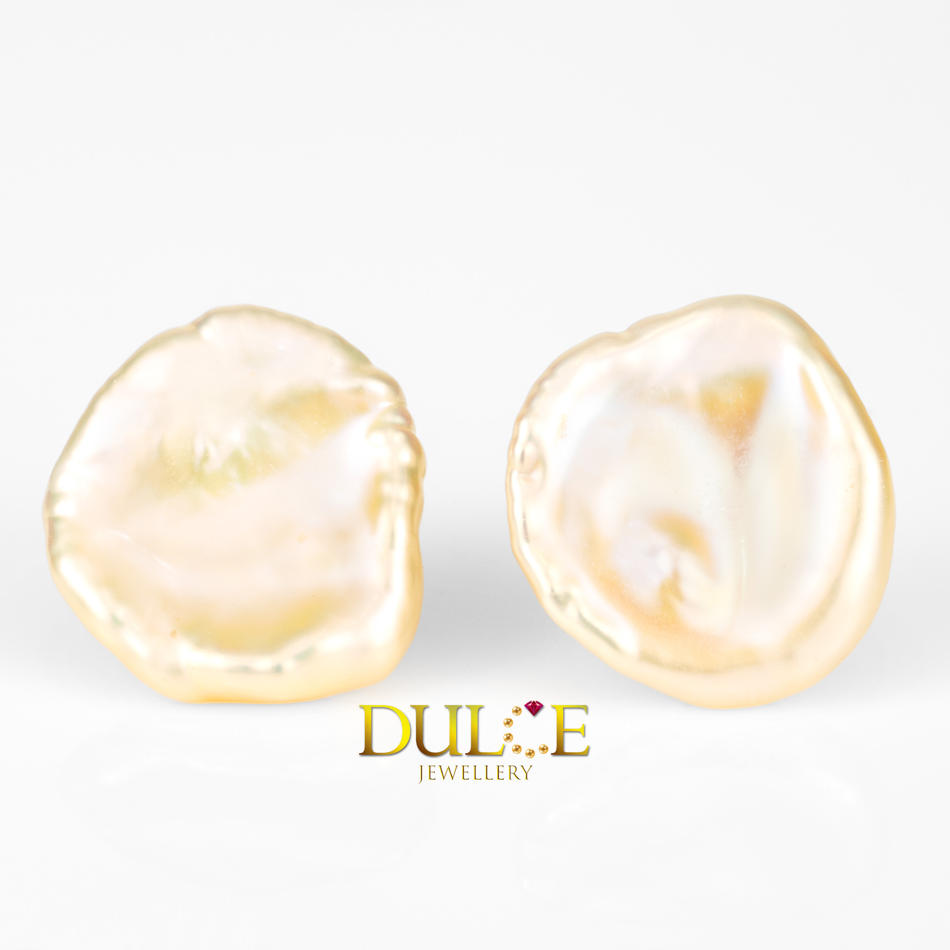 Silver 15-18mm Metallic Freshwater Keshi Pearls Earrings