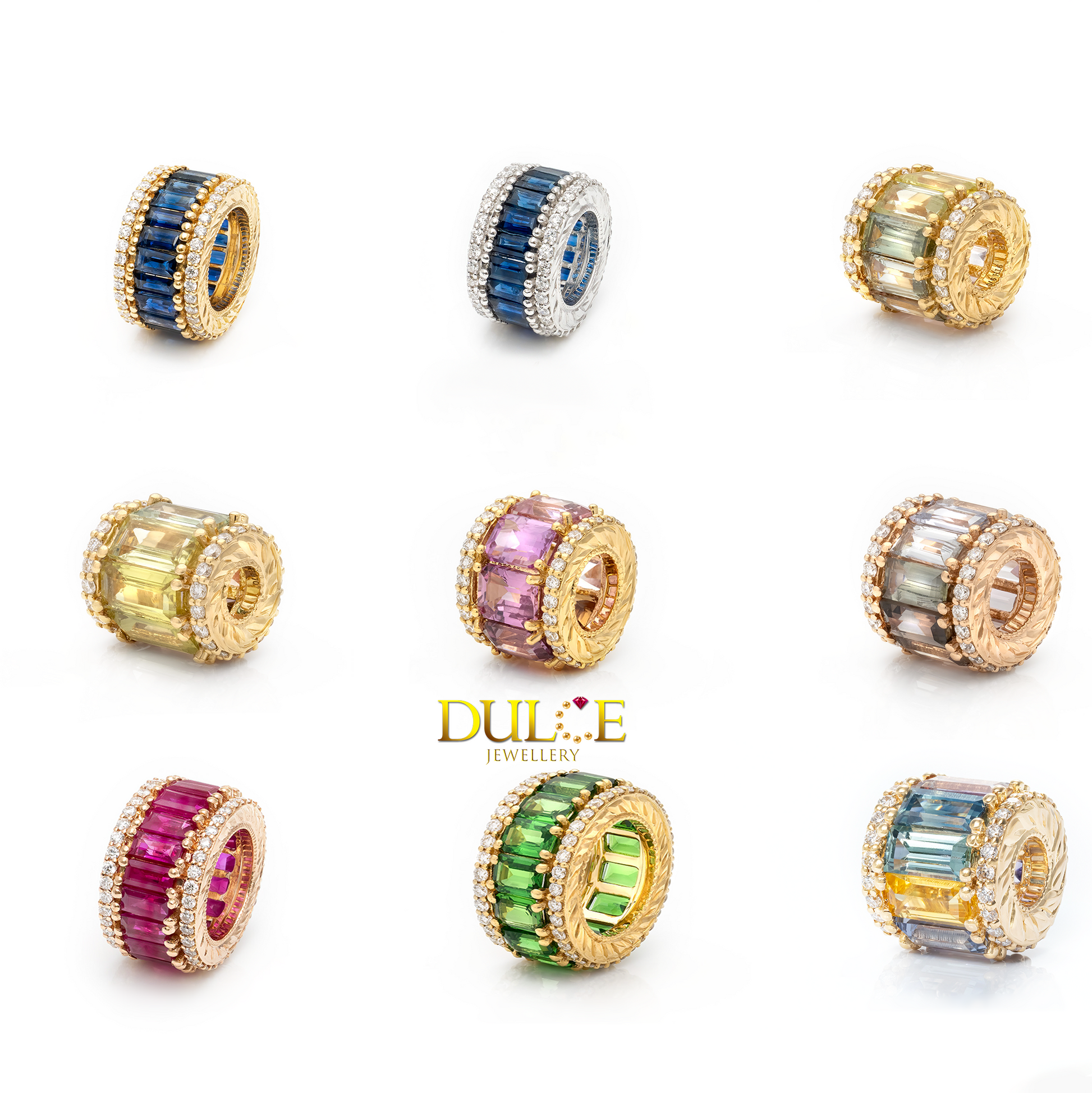 18K Gold Multi-Color Sapphire Diamond Roundel (Price by Request)