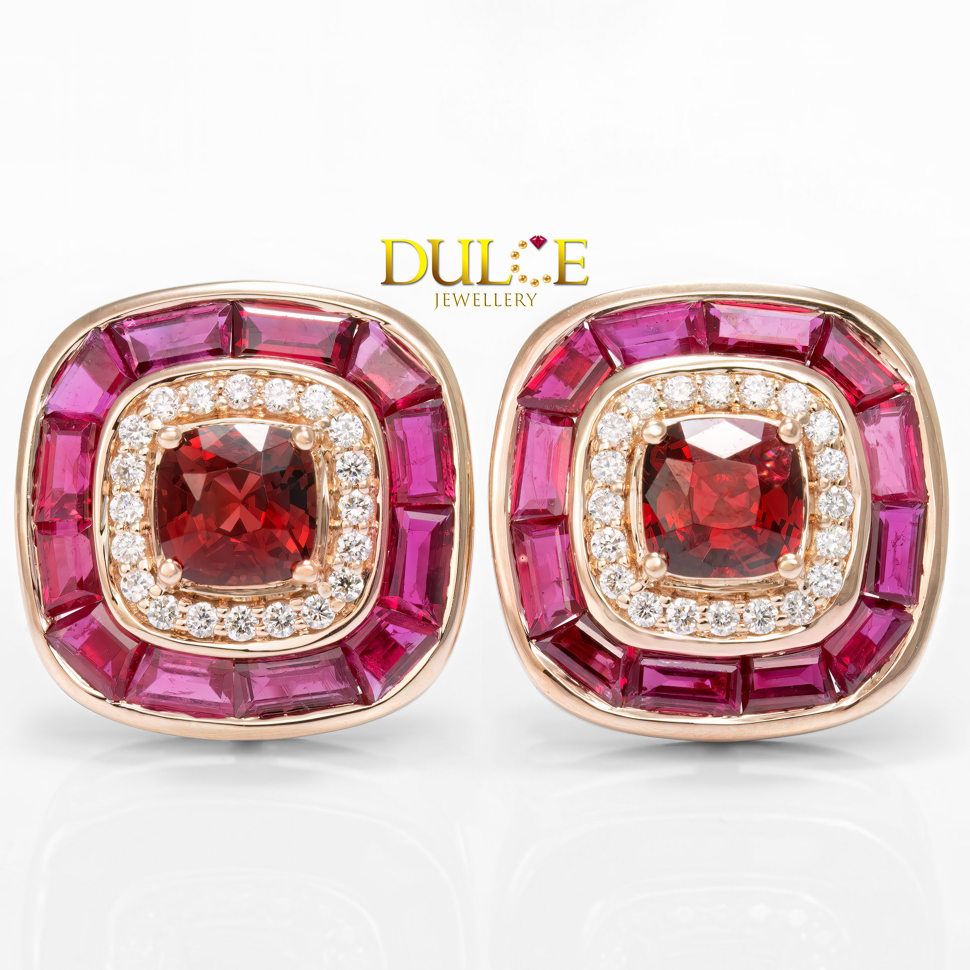 18K Gold Red Spinel Sapphire Earrings (#2698)