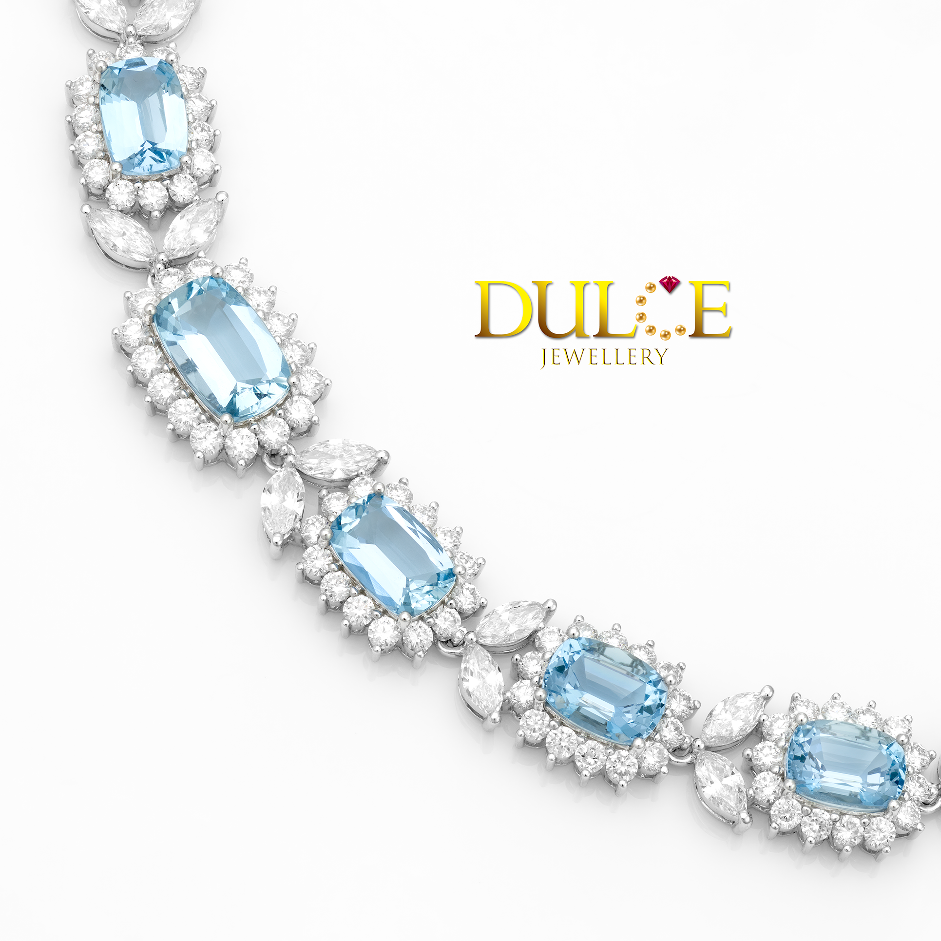 14K金:39.45克 海藍寶:27.27克拉 實驗室培育鑽石(D色 VVS淨度):20.35克拉 |