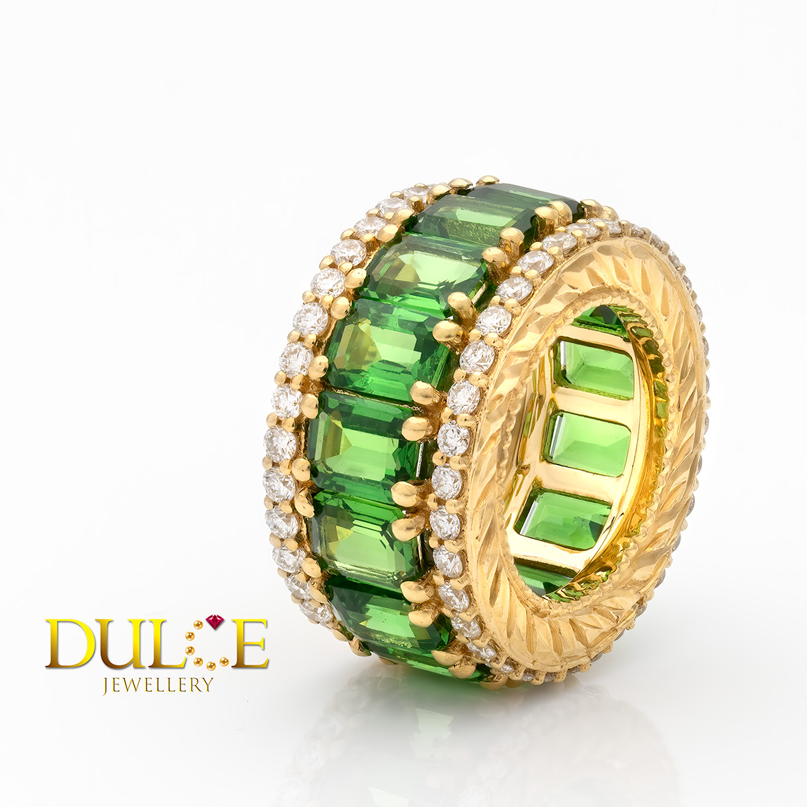 18K金:4.86克 沙弗萊石:2.97克拉 鑽石:0.427 克拉(E/F VS) |