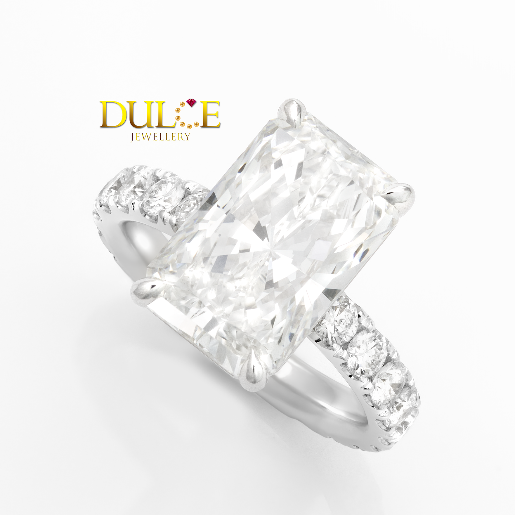 14K金:3.71克 主鑽:5.45克拉 側面實驗室培育鑽石:1.51克拉 IGI報告 |