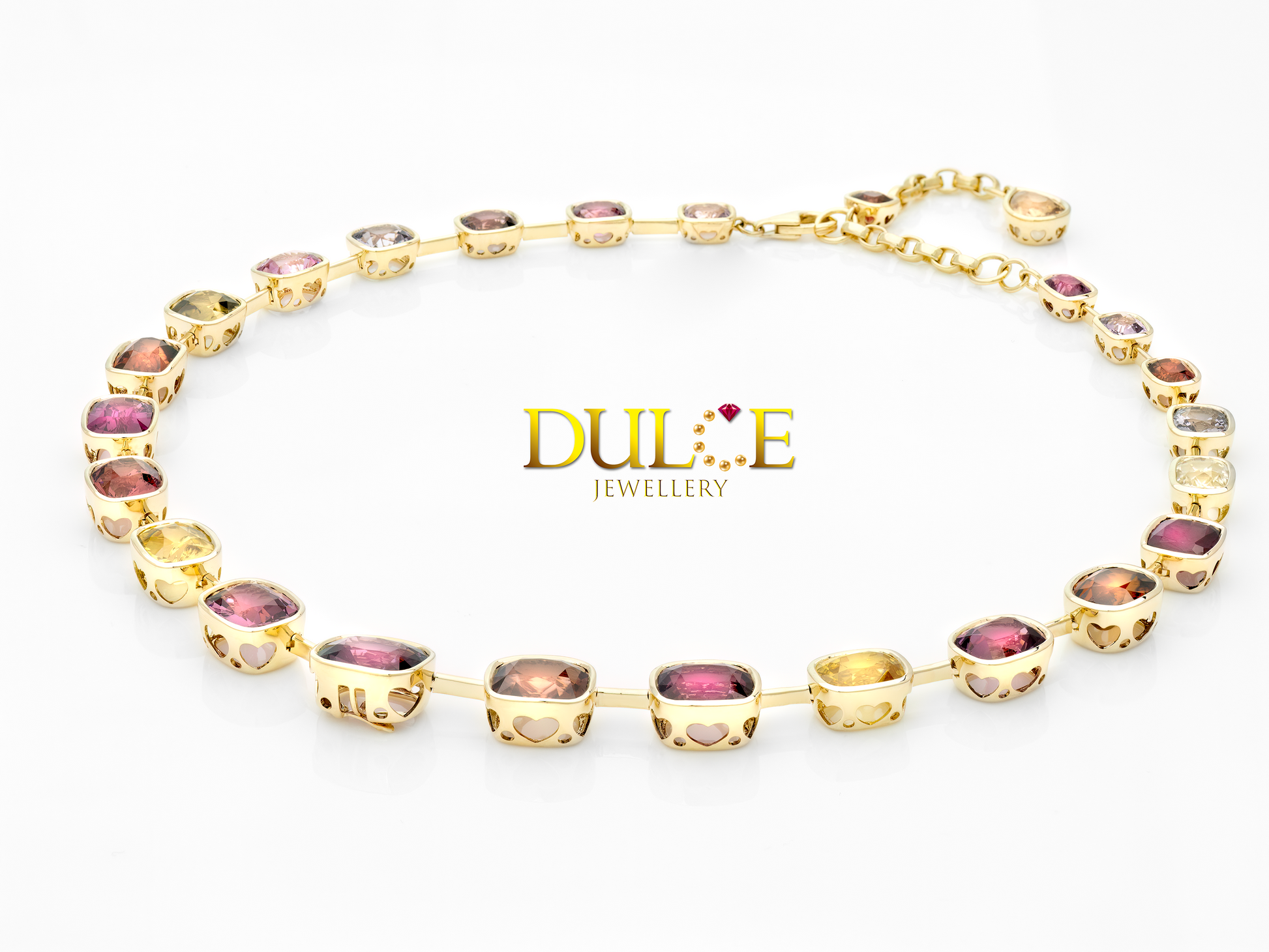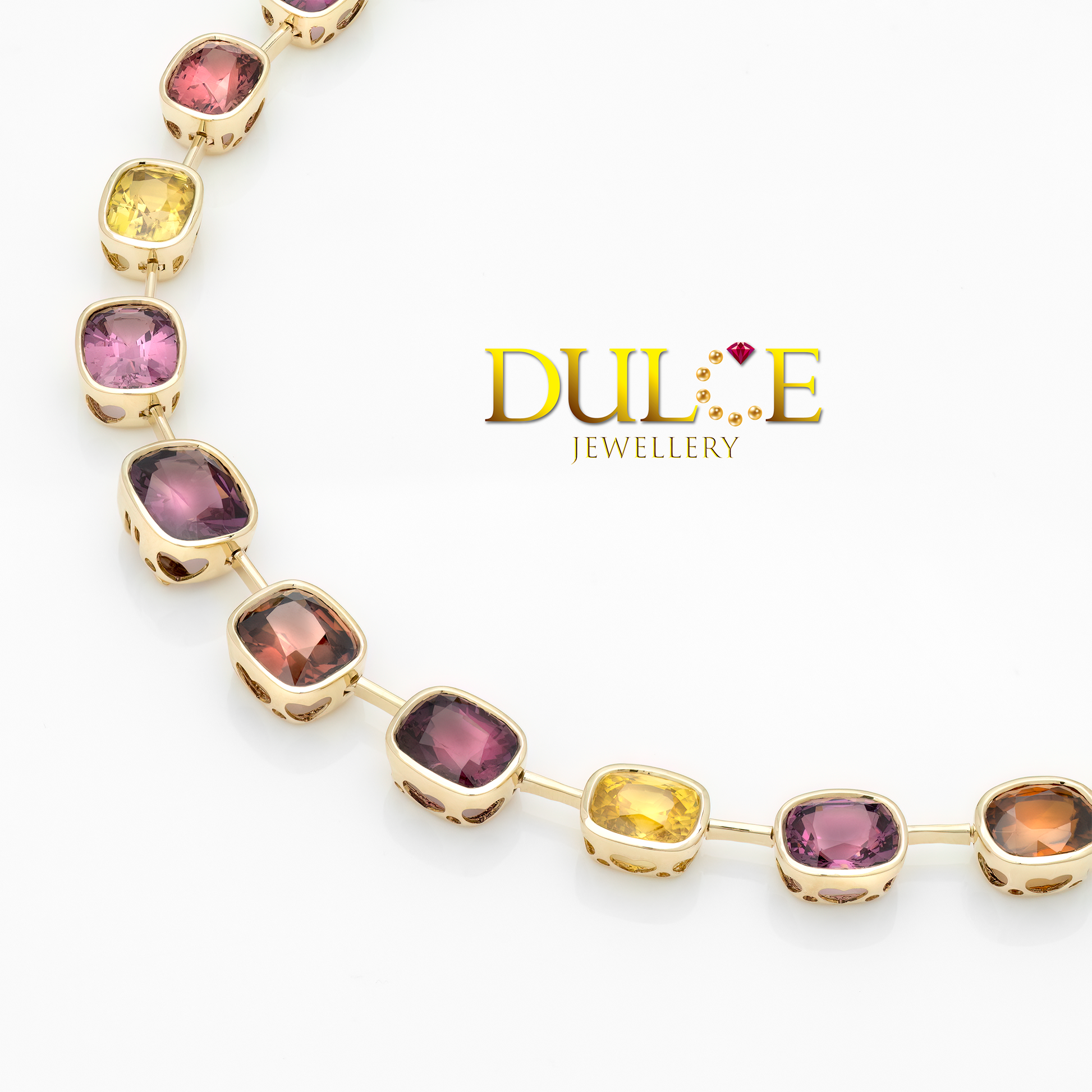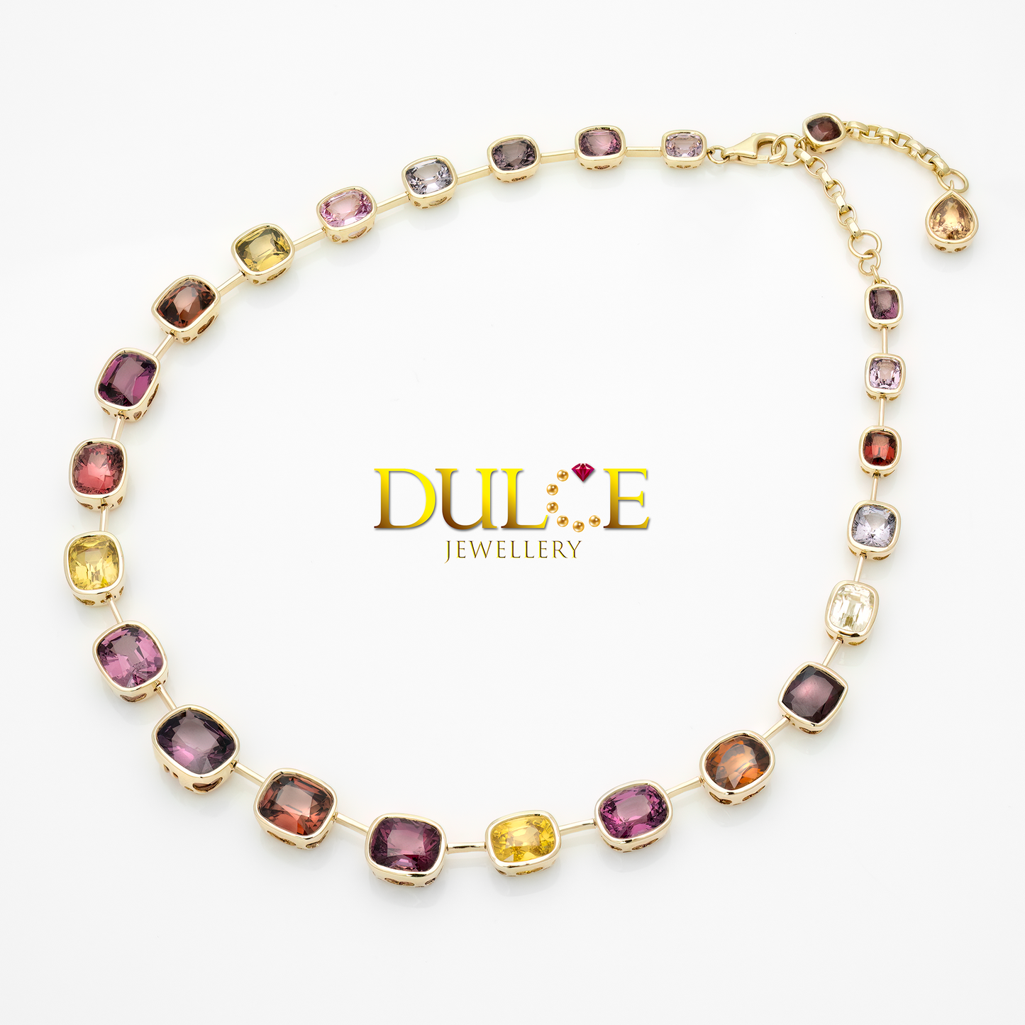 14K 彩色尖晶石、石榴石和風信子項鍊