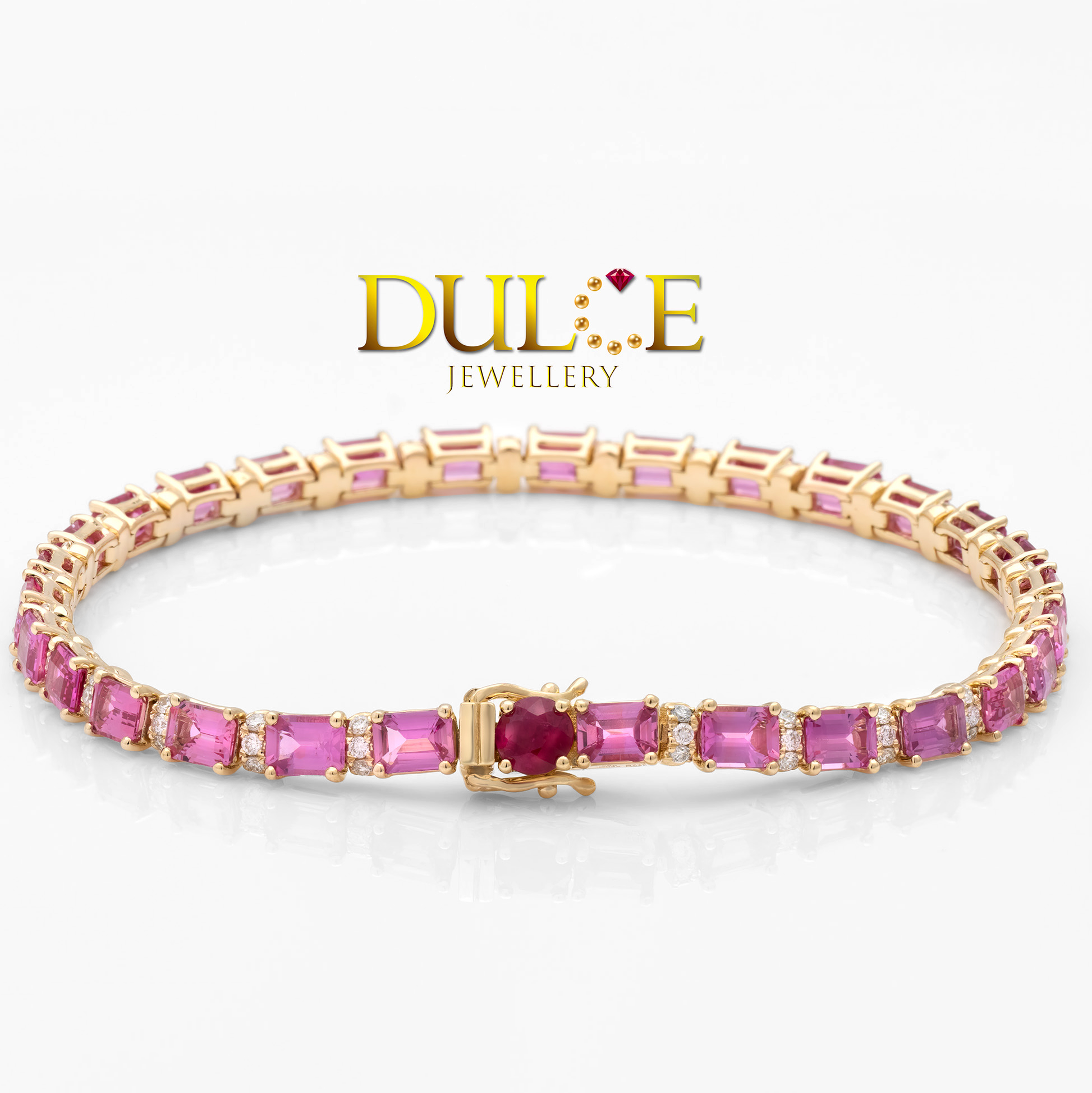 14K 黃金粉紅藍寶石和紅寶石手鍊