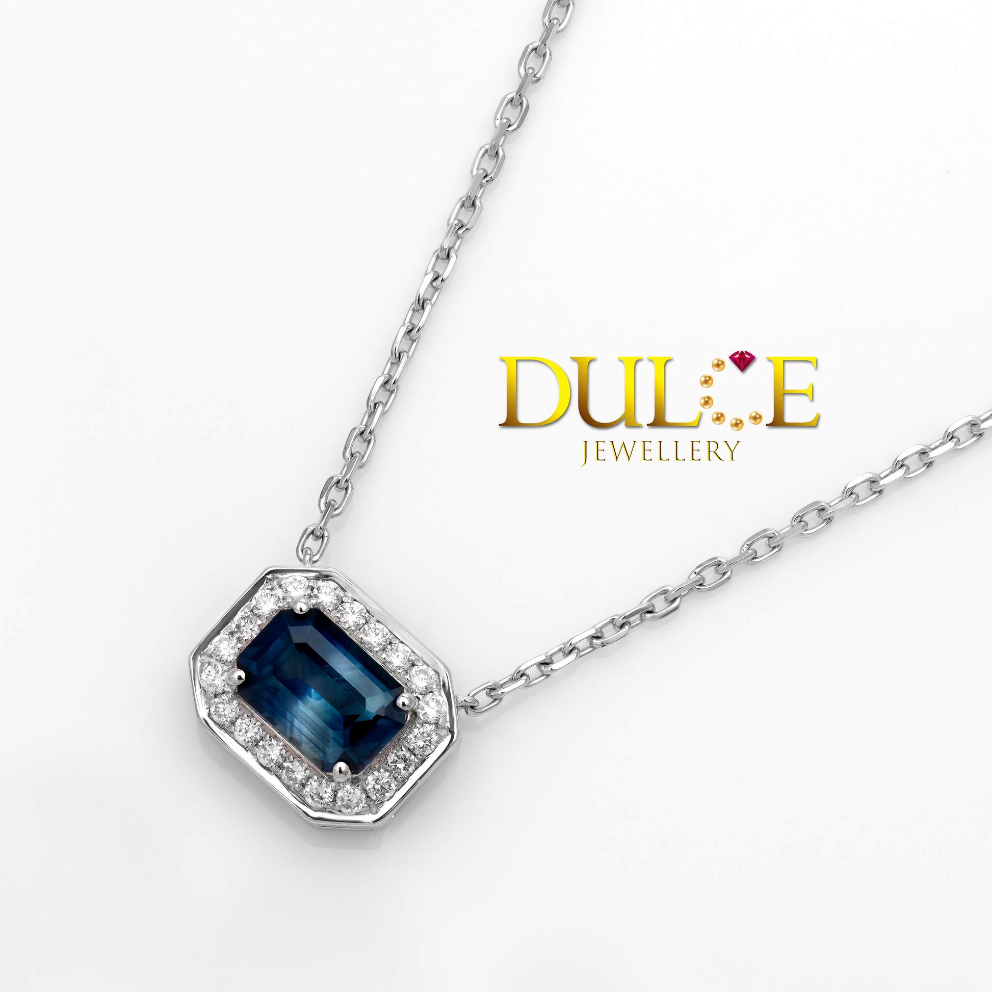 18K金:3.61克 藍綠色藍寶石:1.18克拉 鑽石:0.171克拉(E/F VS) |