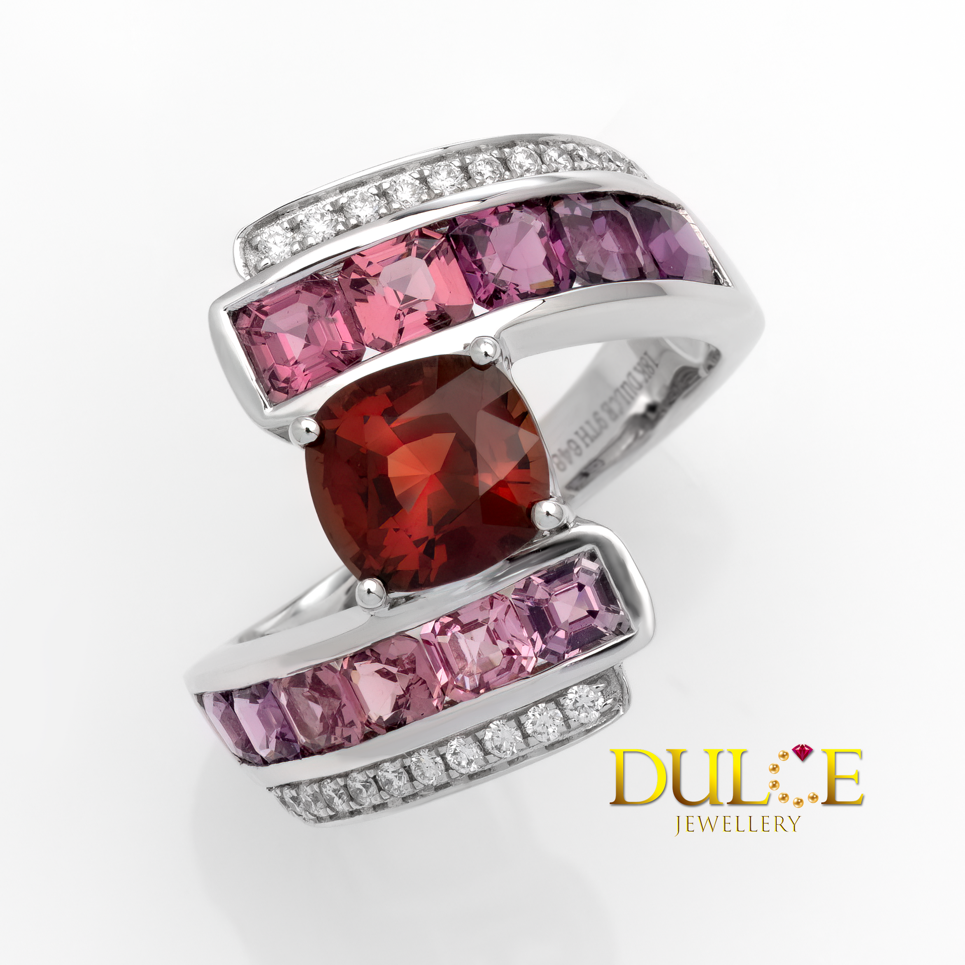 18K 緬甸紅尖晶石和粉紅尖晶石鑽石戒指