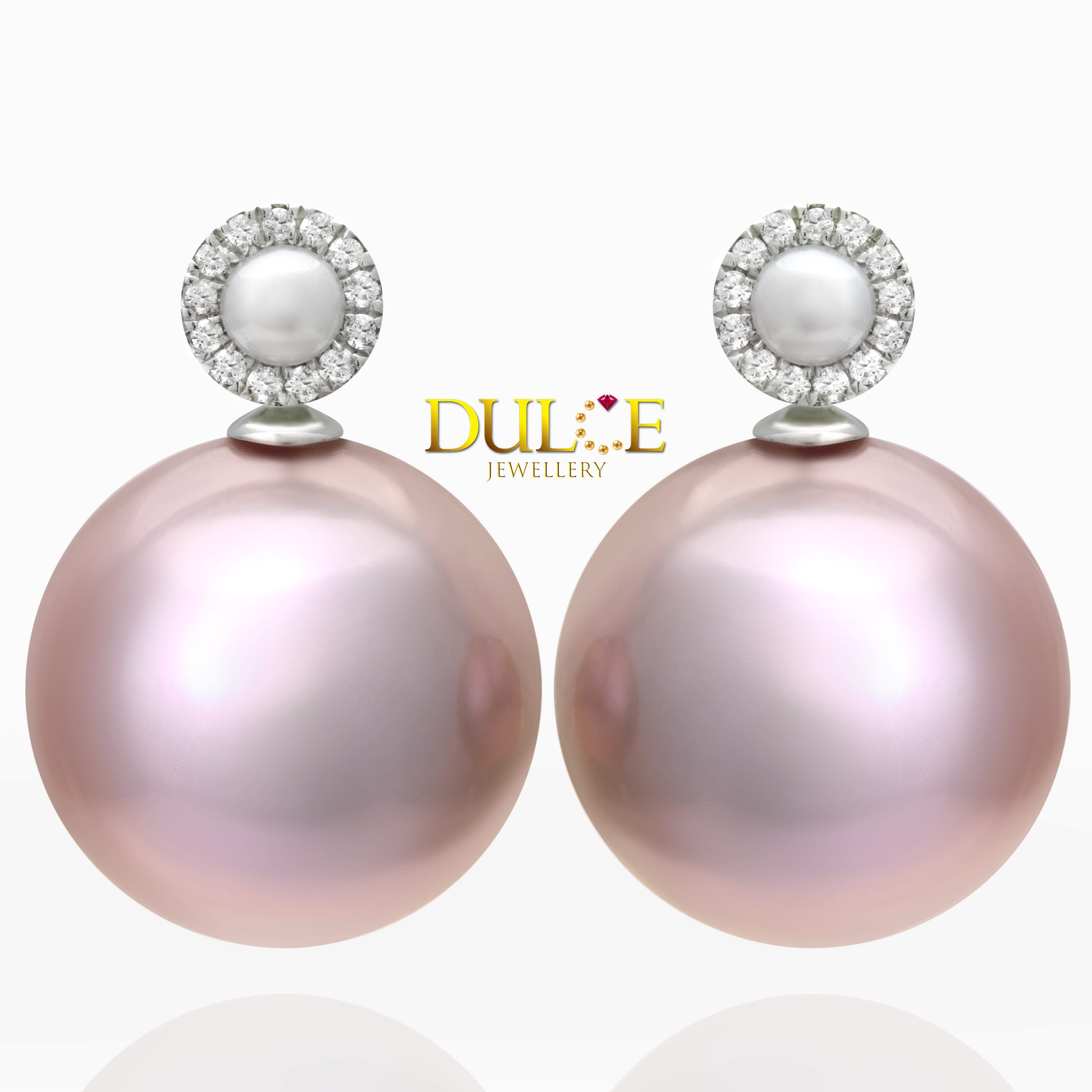 18K 金 14 毫米淡水愛迪生珍珠耳環