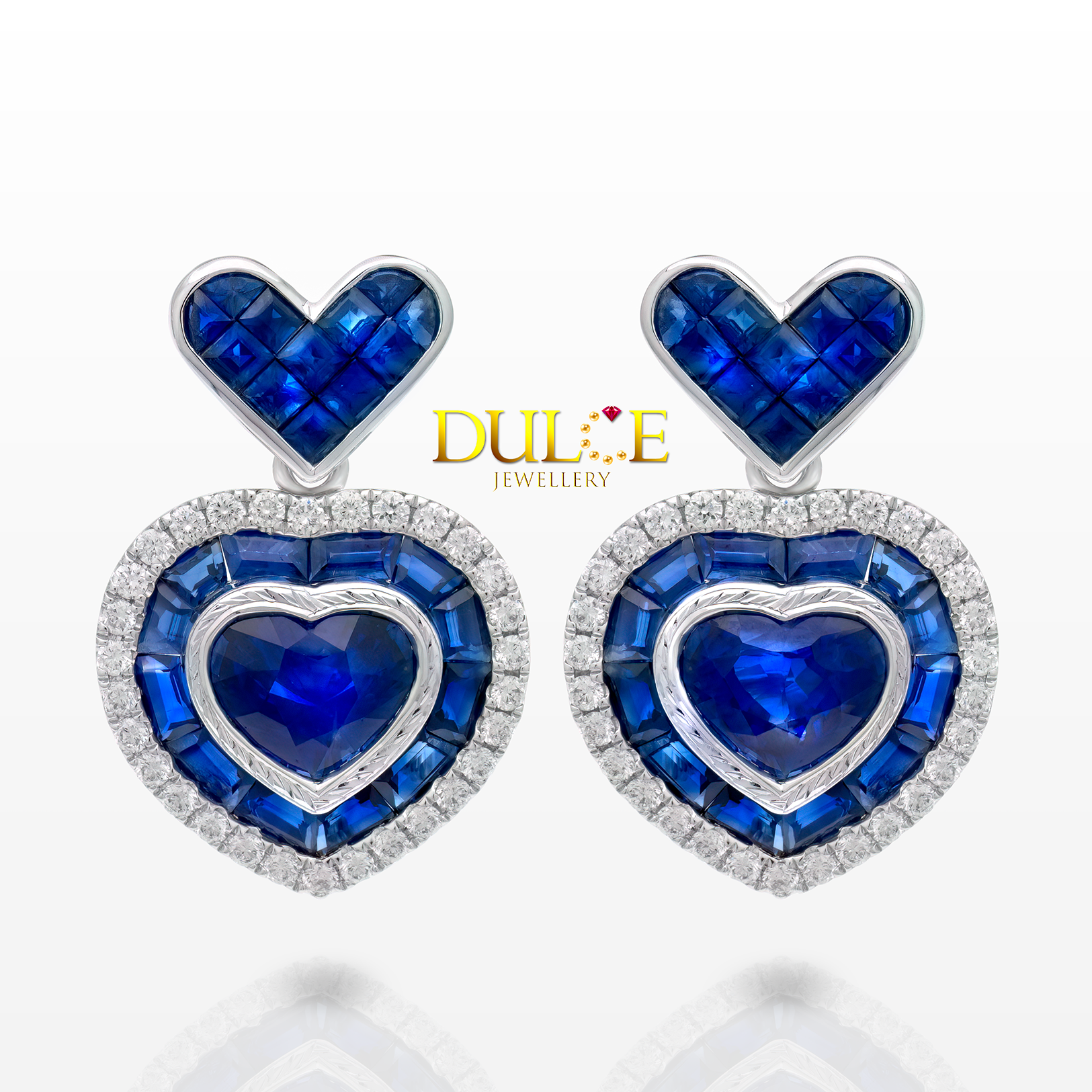 18K金:6.95克 心形藍寶石:2.79克拉 側藍寶石:3.92克拉 鑽石:0.56克拉(E/F VS) |