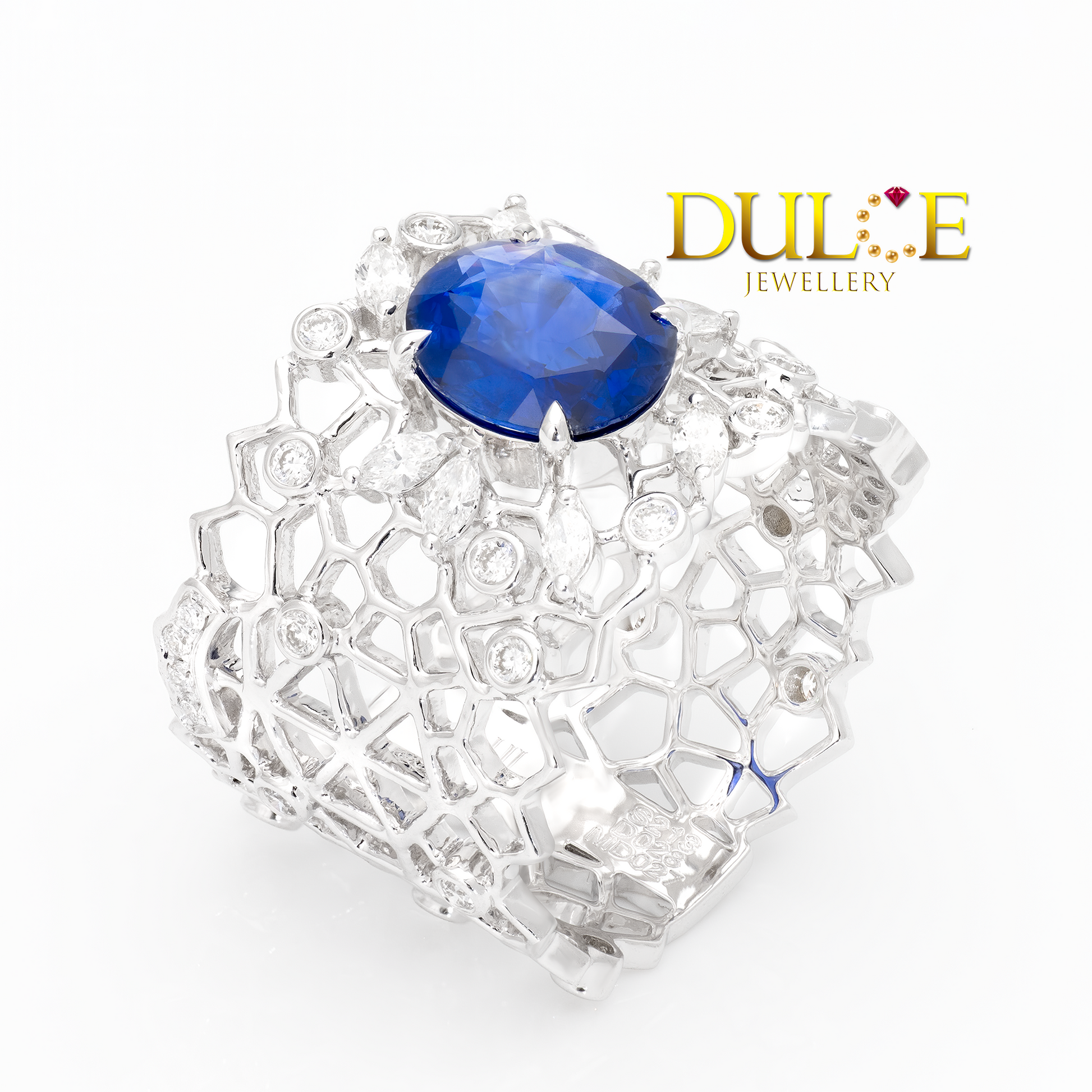 18K金:7.63克 藍寶石:2.13克拉 鑽石:0.55(E/F VS) |