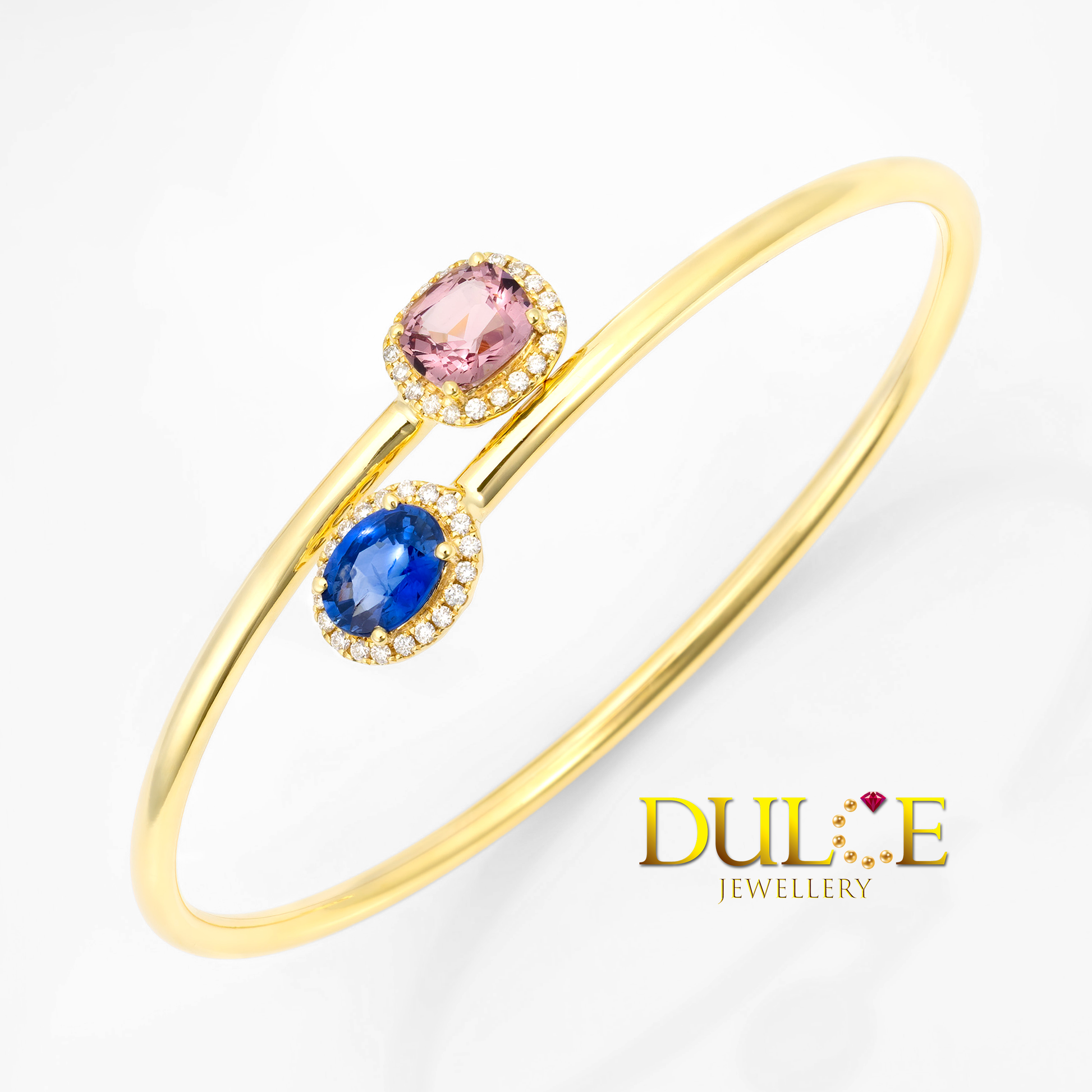18K金:5.63克 藍寶石:1.08 克拉 尖晶石:1.18克拉 鑽石:0.20 克拉(E/F VS) |
