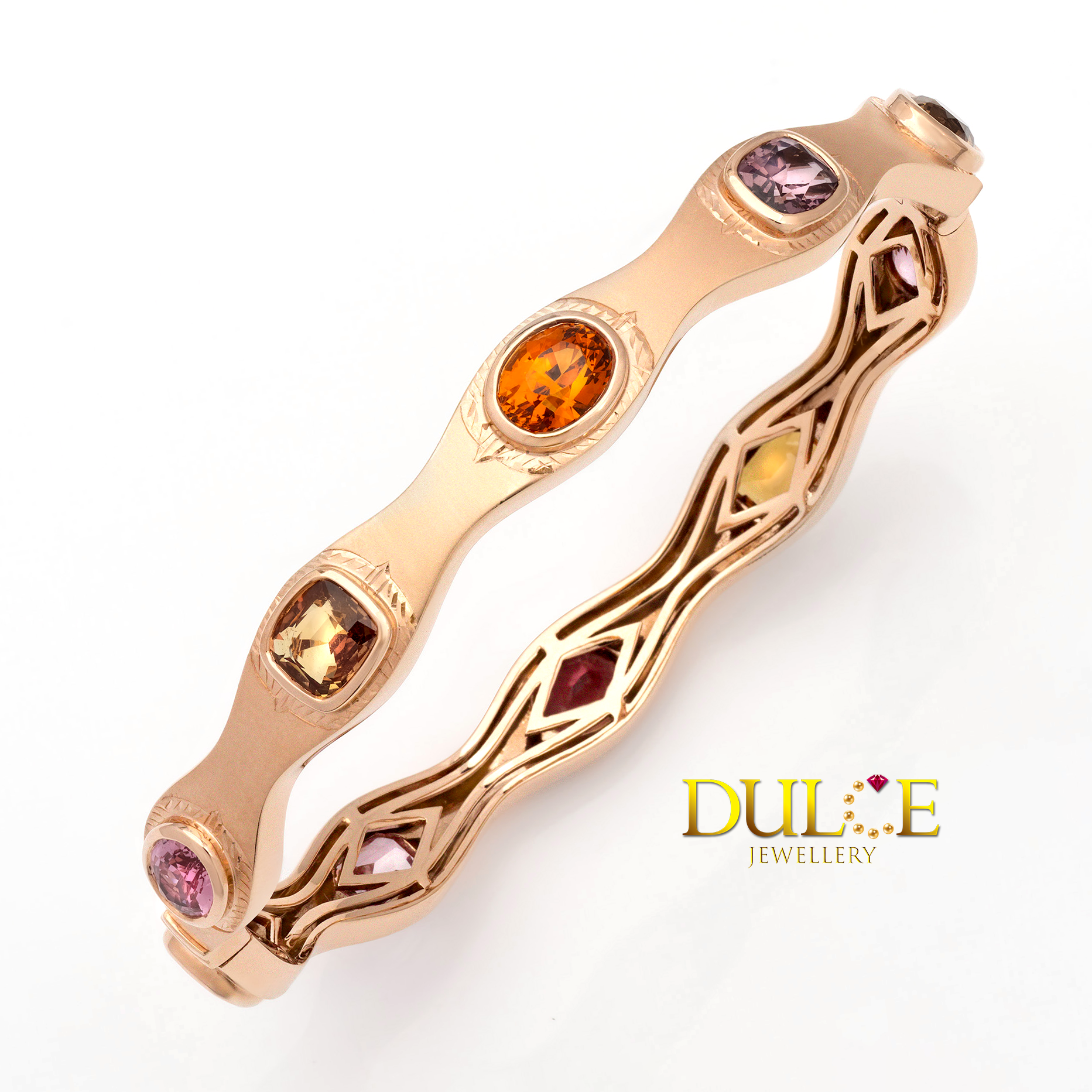 18K 金帕帕拉恰、芬達石榴石和尖晶石手鐲
