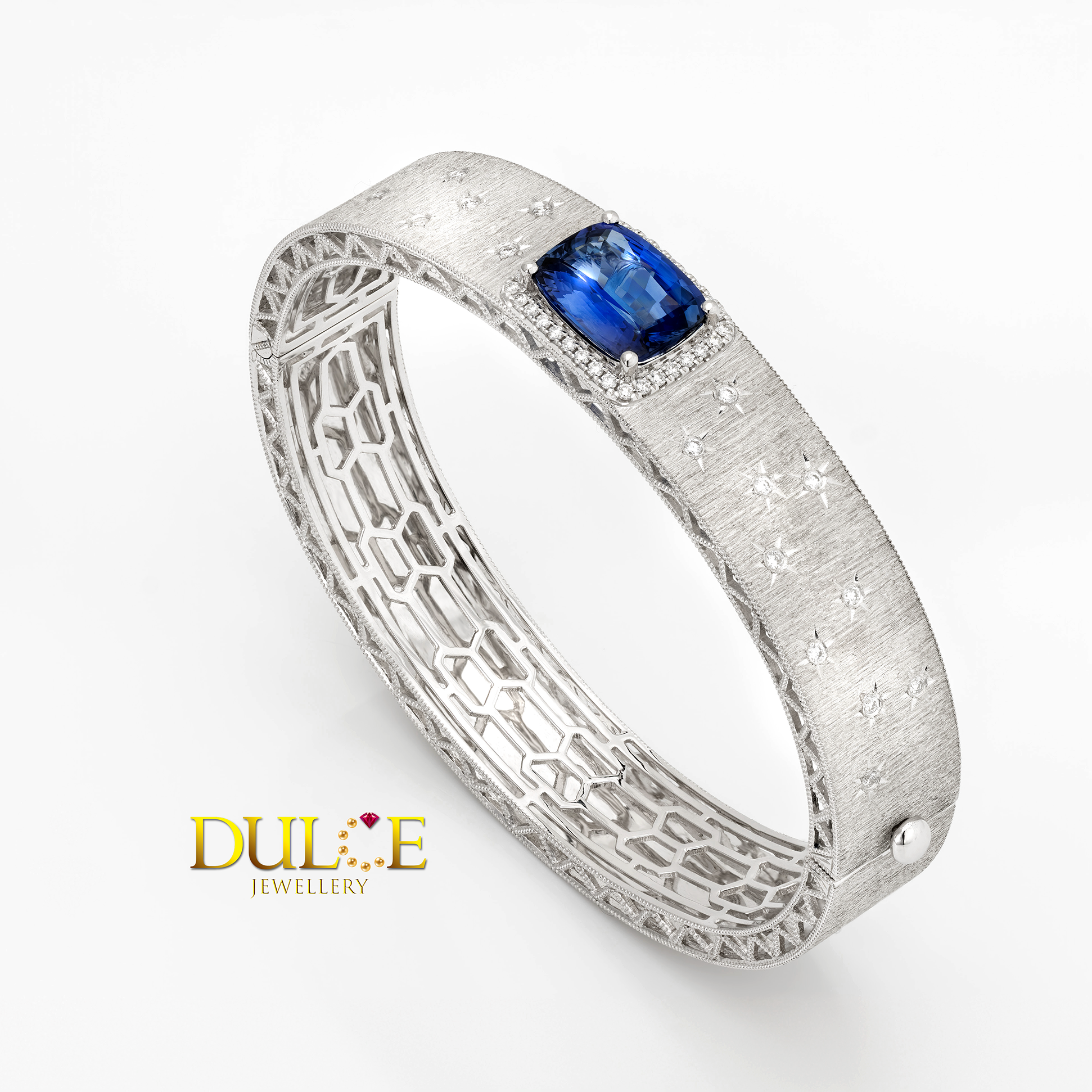 18K金:32.84克 藍寶石:5.0 克拉 鑽石:0.195 克拉(E/F VS) |