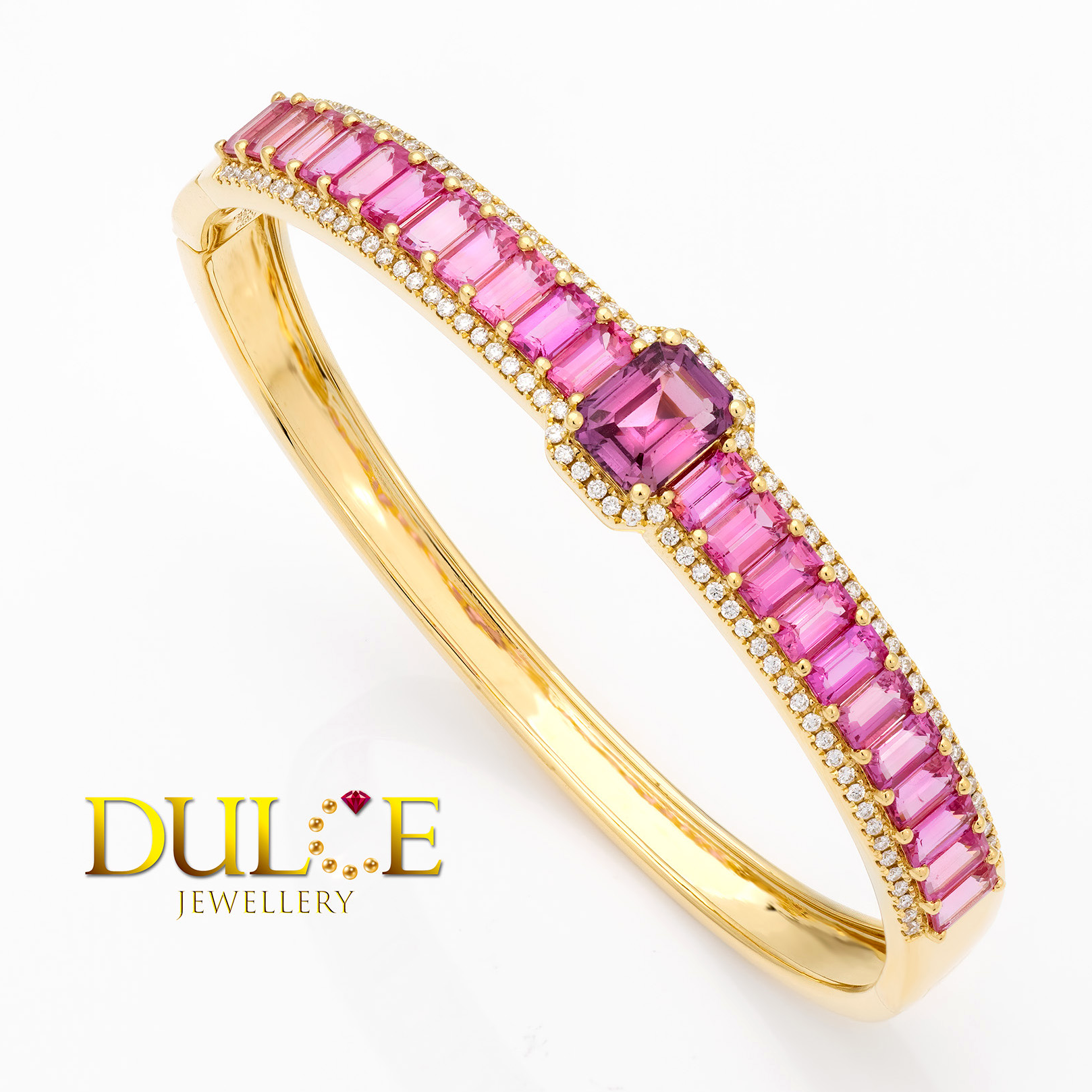 18K 金粉紅色藍寶石和鑽石手鐲