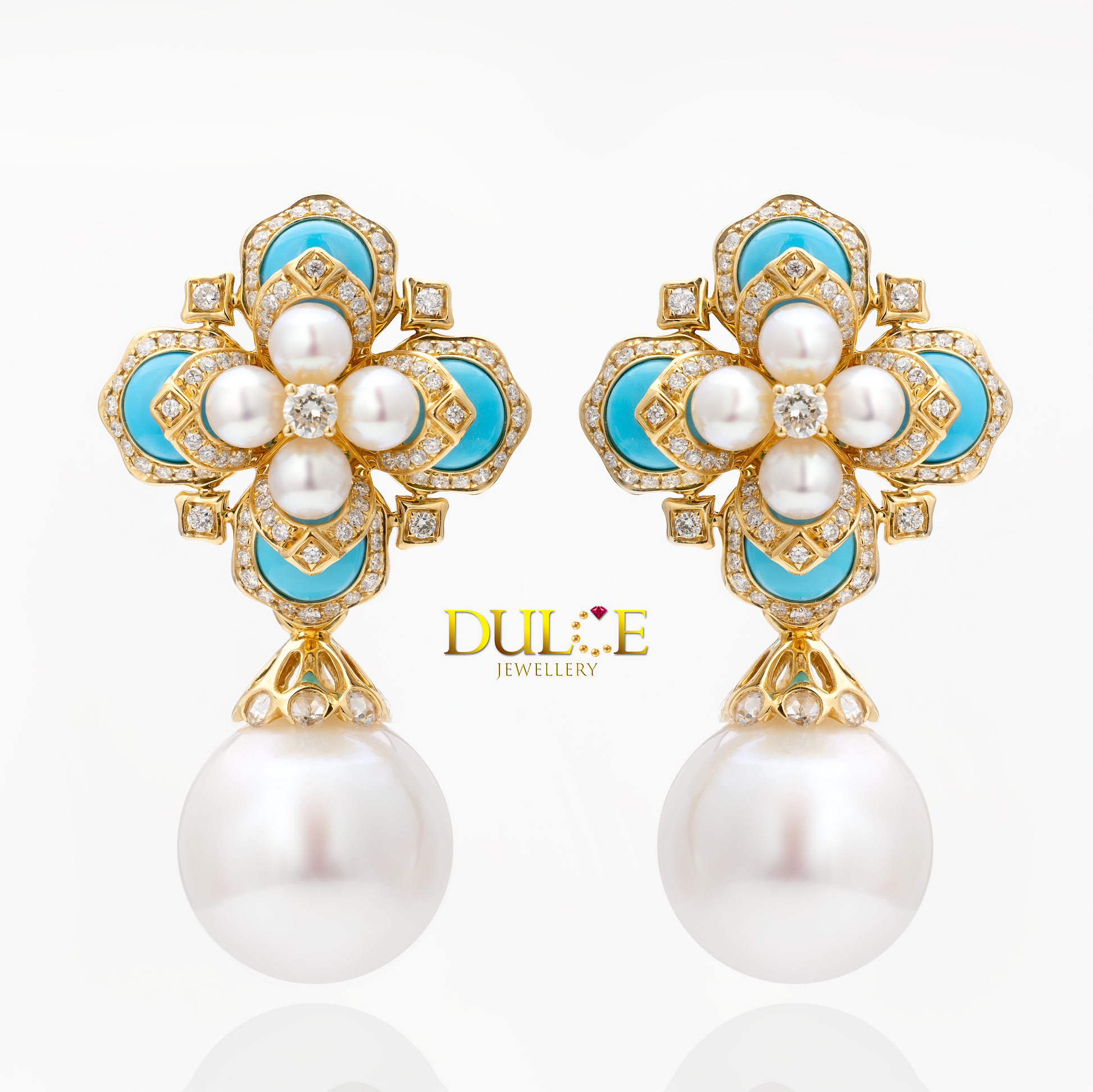 18K金:8.05克 睡美人綠松石 3毫米阿古屋珍珠 13毫米淡水愛迪生珍珠 鑽石:1.188克拉 |