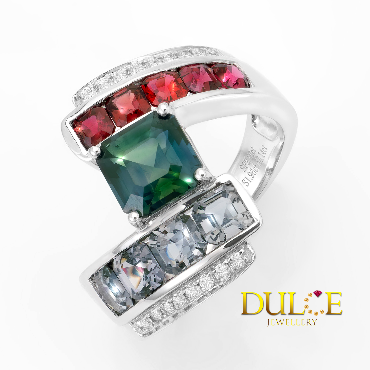 18K 綠色藍寶石和尖晶石鑽石戒指