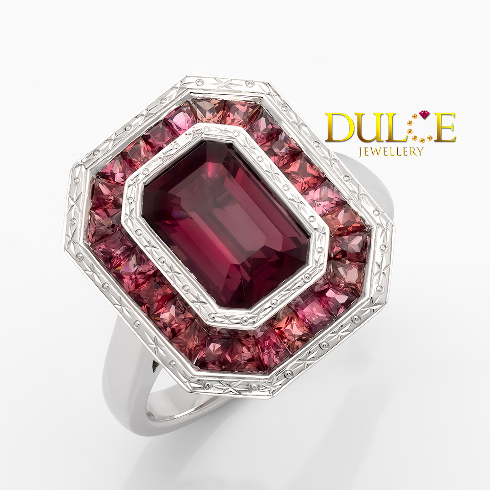 18K 紅色尖晶石和粉紅色尖晶石光環戒指