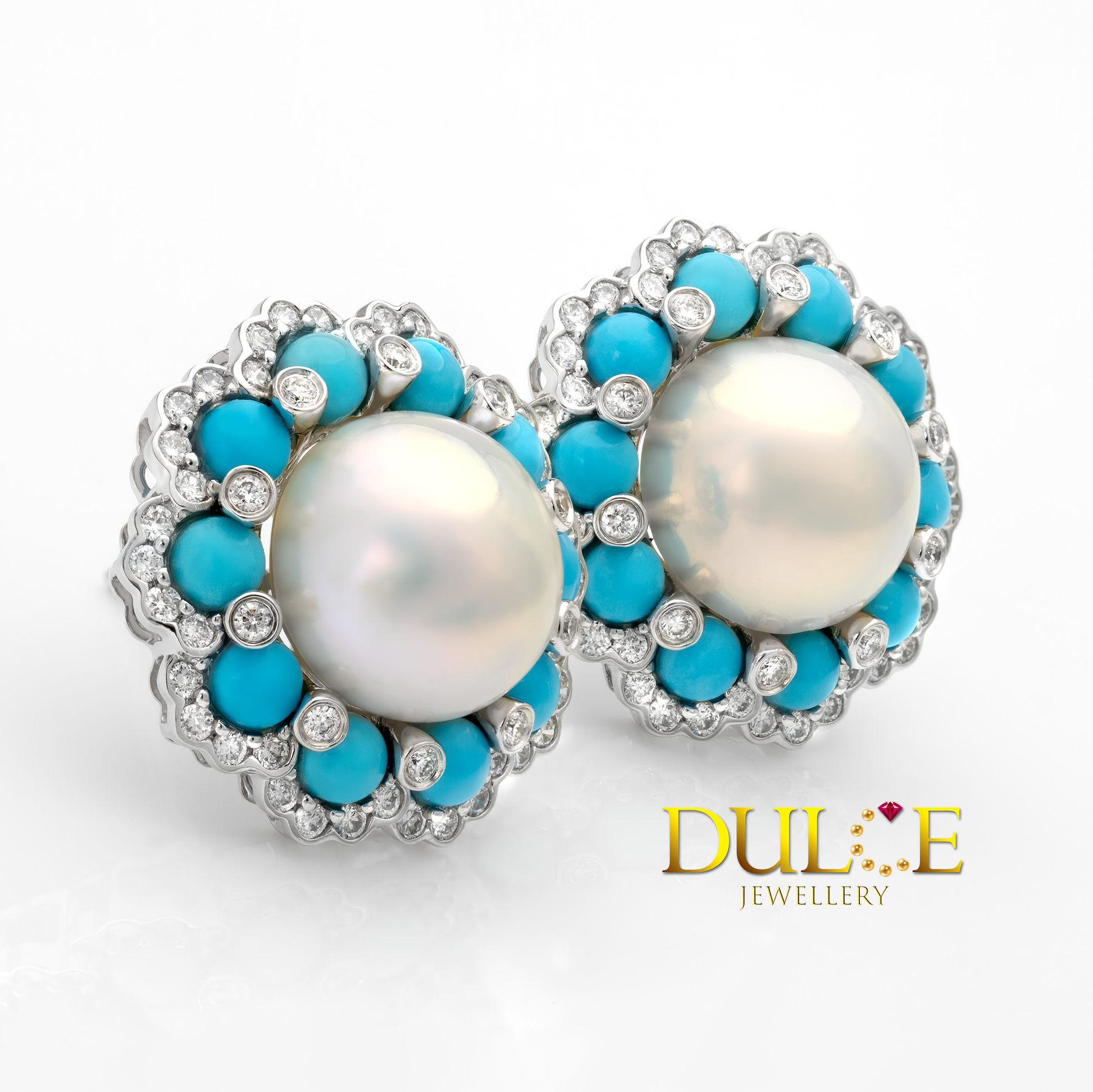 18K金:6.20克 睡美人綠松石:2.80克拉 10毫米淡水馬貝珍珠 鑽石:0.92克拉(G/H SI) |