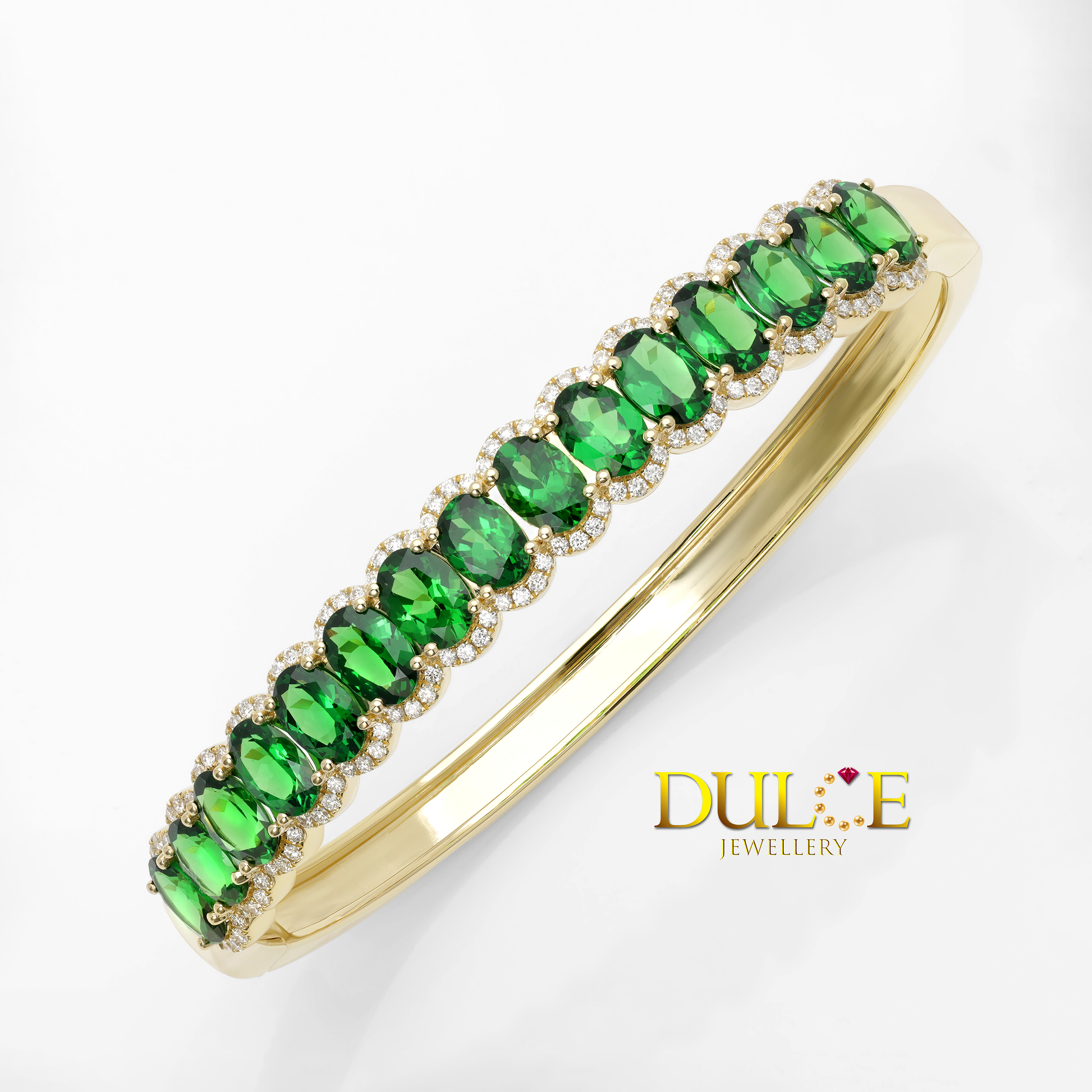 18K金:19.38克 沙弗萊石:9.34克拉 鑽石:0.61克拉(E/F VS) |
