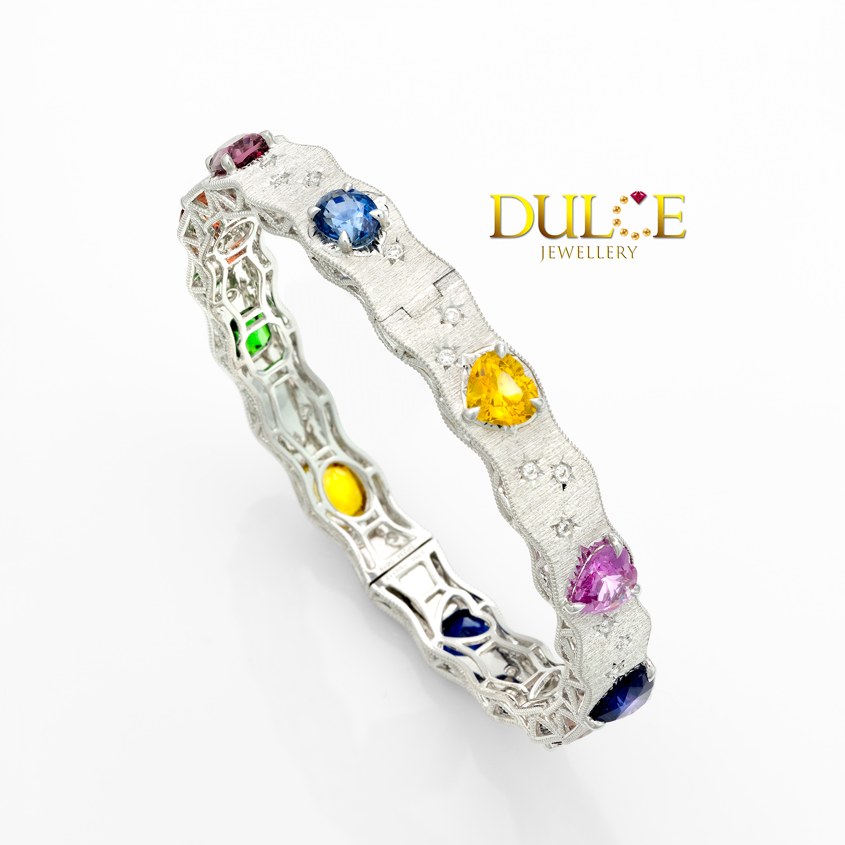 18K彩虹藍寶石、尖晶石和沙弗萊石手鐲