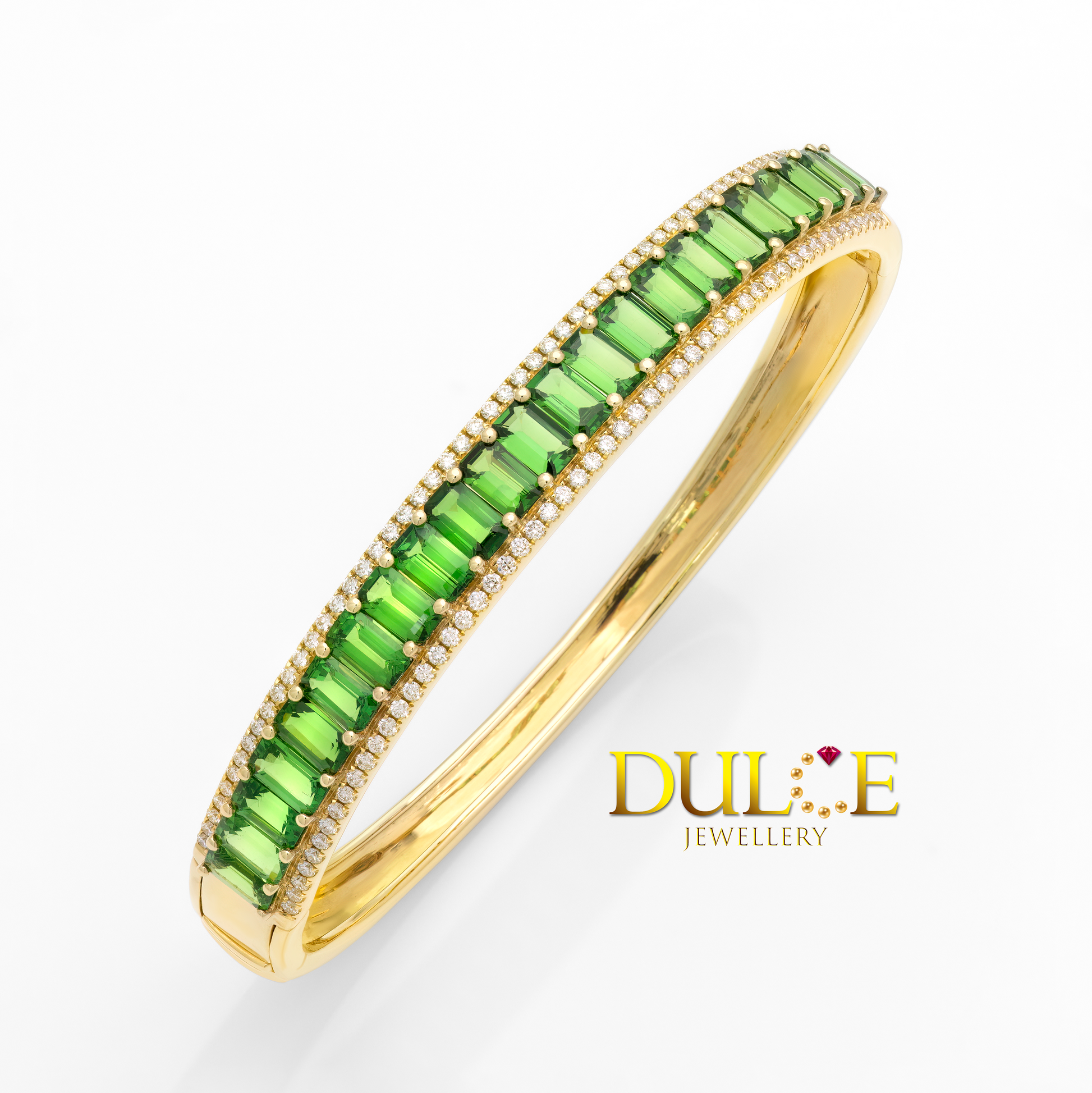 14K金:15.59克 沙弗萊石:7.84克拉 鑽石:0.69克拉(E/F VS) |