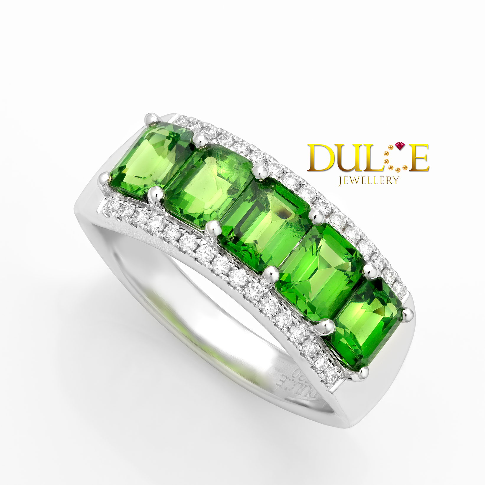 14K金:4.52克 沙弗萊石:2.89克拉 鑽石(E/F VS):0.16克拉 |