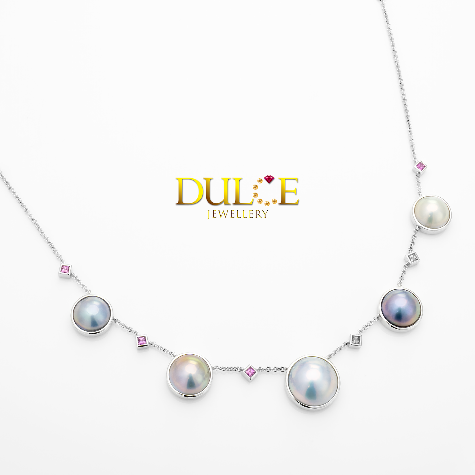 925銀日本馬貝珍珠粉紅藍寶石項鍊