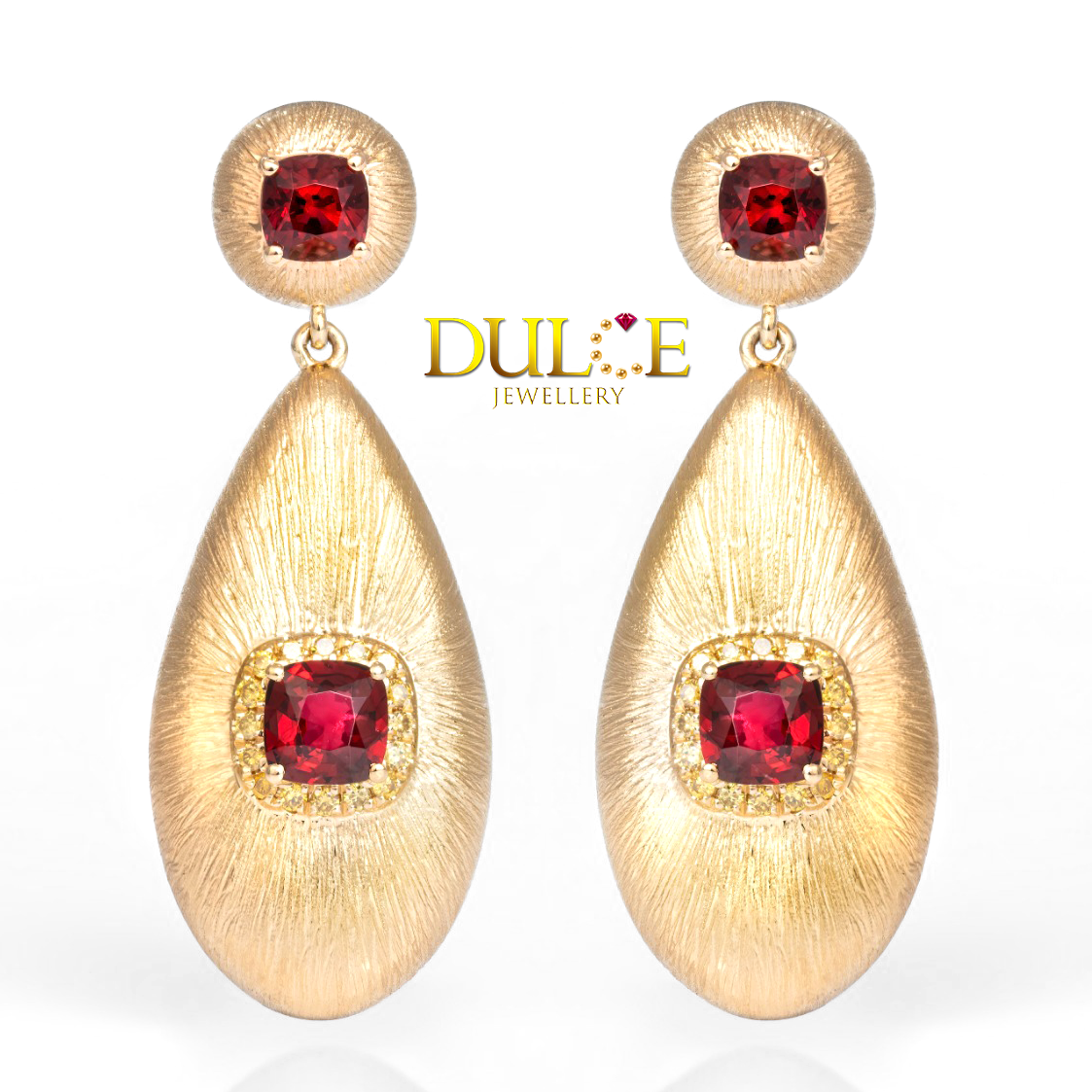 18K 金紅尖晶石黃鑽耳環