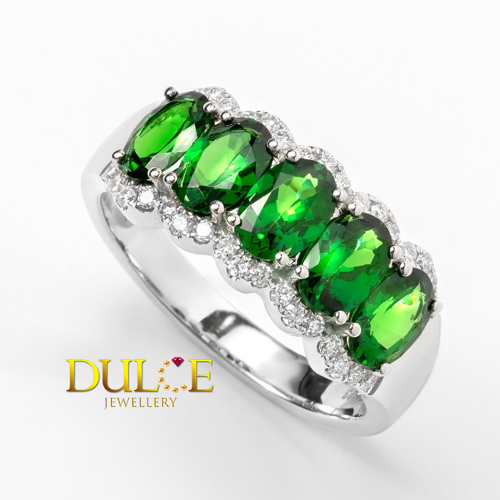 18K金:5.04克 沙弗萊石:2.16克拉 鑽石:0.190克拉(E/F VS) |