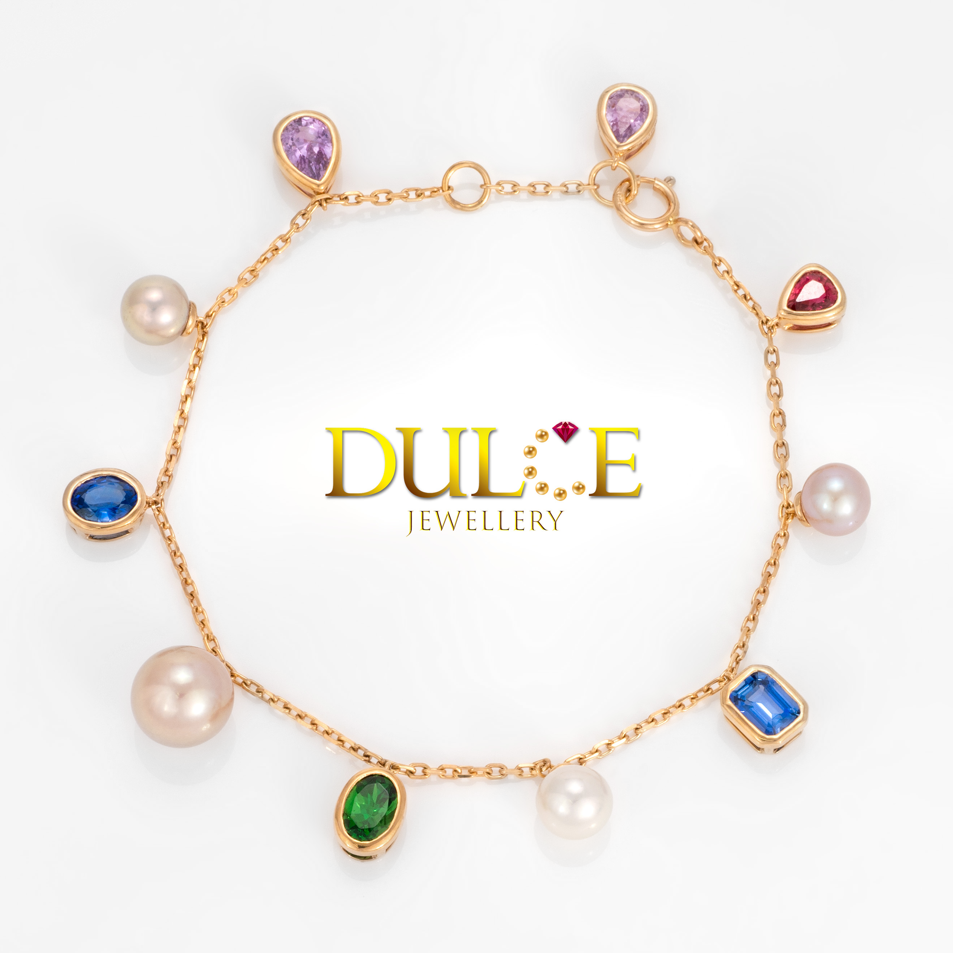 18K 玫瑰金藍寶石、沙弗萊石和淡水珍珠手鍊