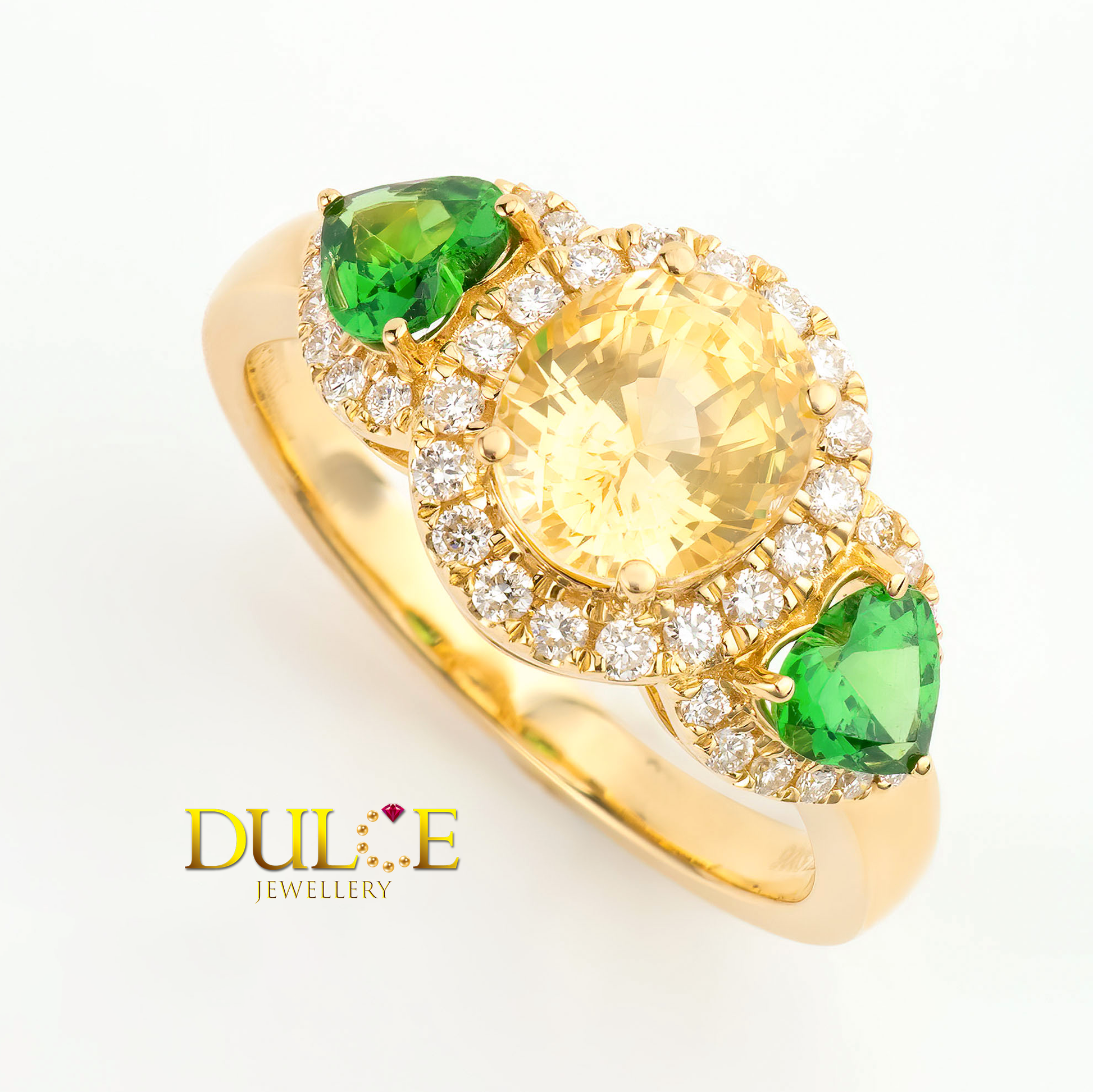 18K 黃金藍寶石、沙弗萊石及鑽石戒指 (GRSAPTSV5305)