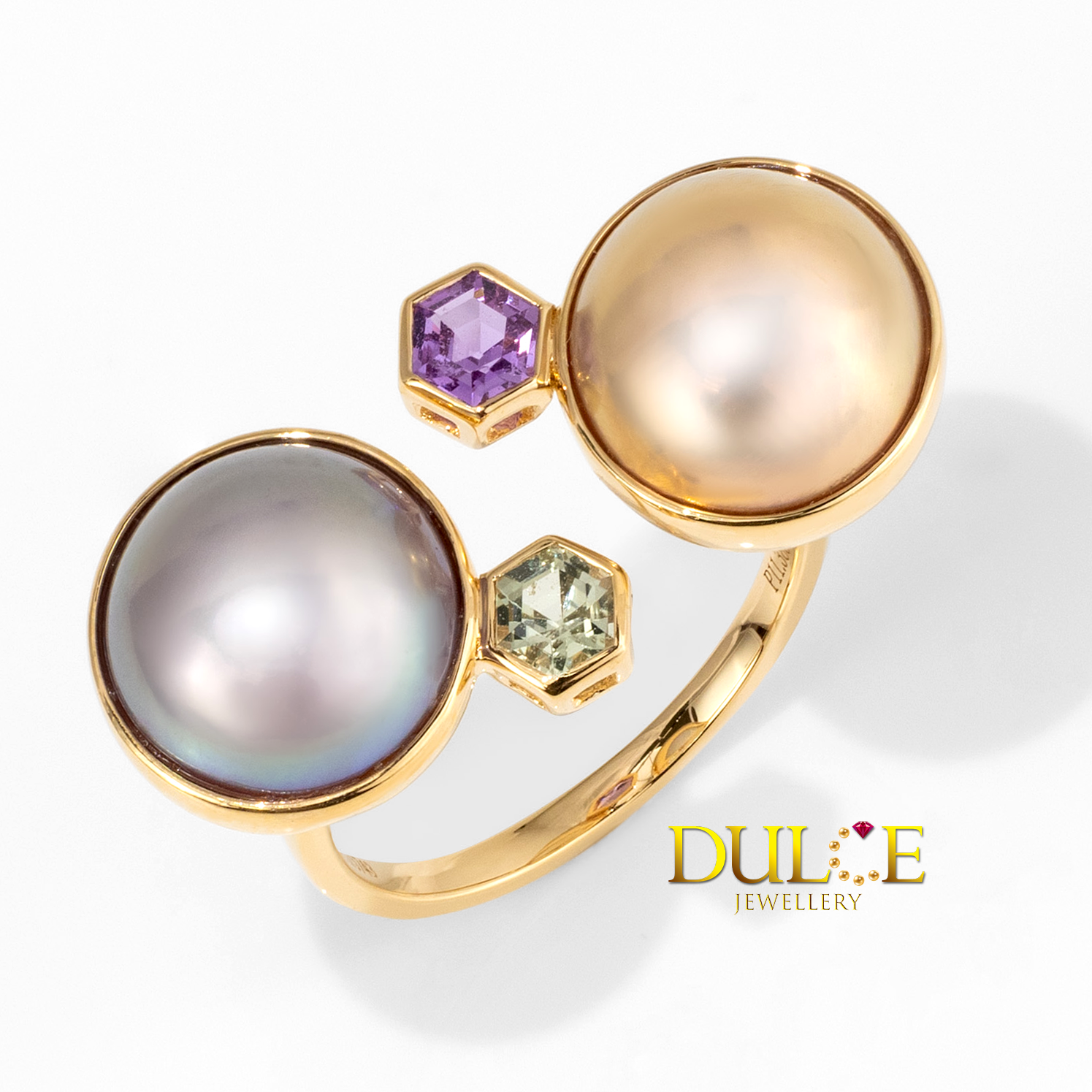 18K 金藍寶石與淡水馬貝戒指 (5744)