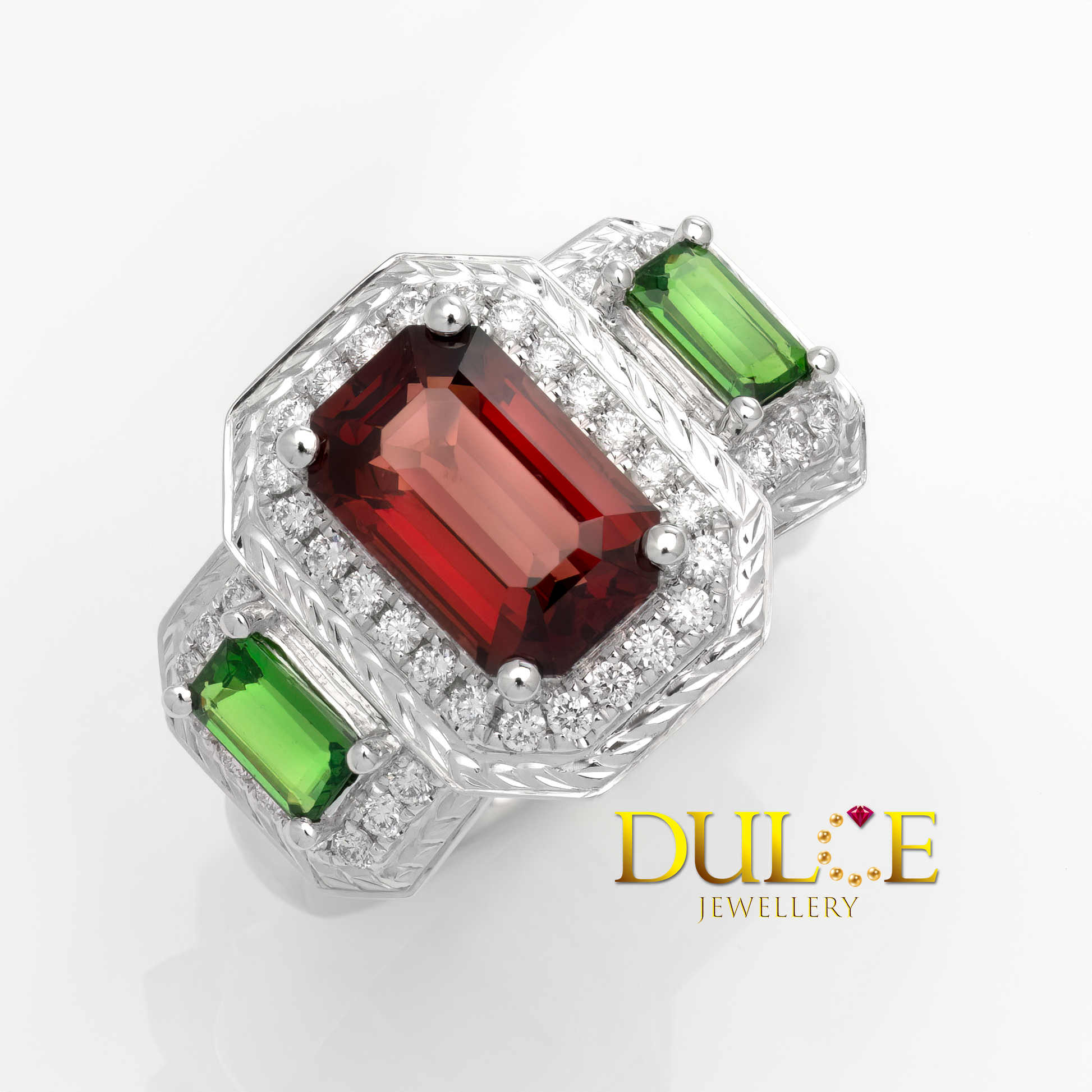 鉑金紅尖晶石和沙弗萊石鑽石戒指