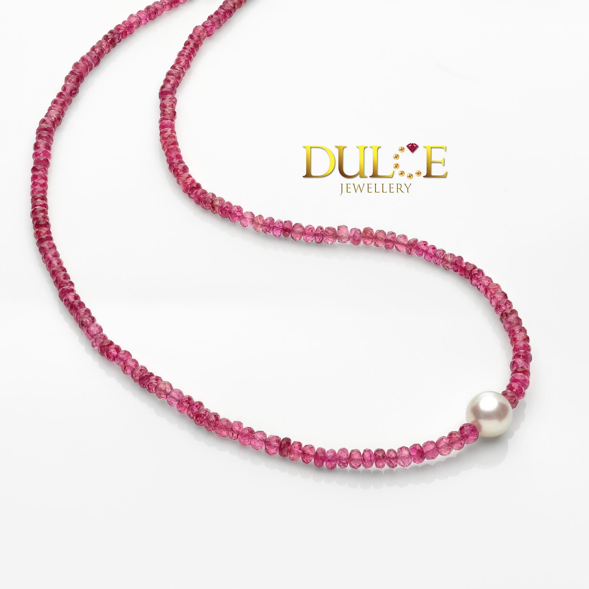 925銀扣粉紅尖晶石珠子和日本Akoya項鍊